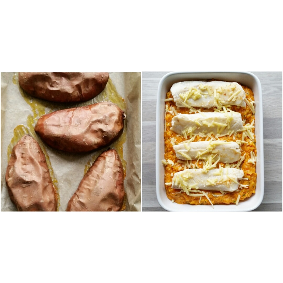 En skikkelig snaddergod middag som ikke tar altfor lang tid, spesielt ikke om du tilbereder søtpotetmosen dagen i forveien, og oppbevarer den i kjøleskapet