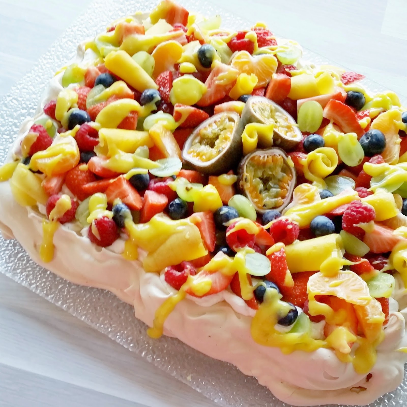 (Gir en stor pavlova, nesten på str med et stekebrett.)